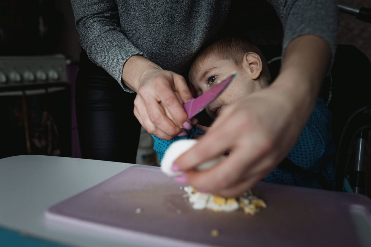 Вадим помогает маме резать вареные яйцаФото: Вадим Брайдов для ТД Курсы лечебной физкультуры, массажа и участие остеопата необходимы Вадику минимум раз в квартал. Таня видит, как сын меняется, пусть медленно и перемены едва заметны посторонним, но мальчишка развивается.