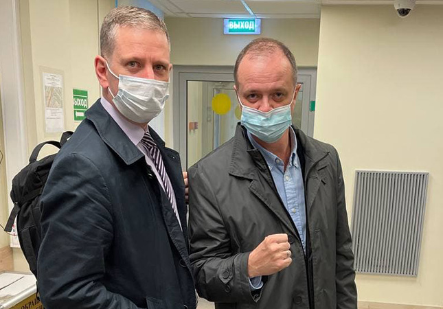 Иван Павлов и адвокат Александр Пиховкин в Следственном комитете