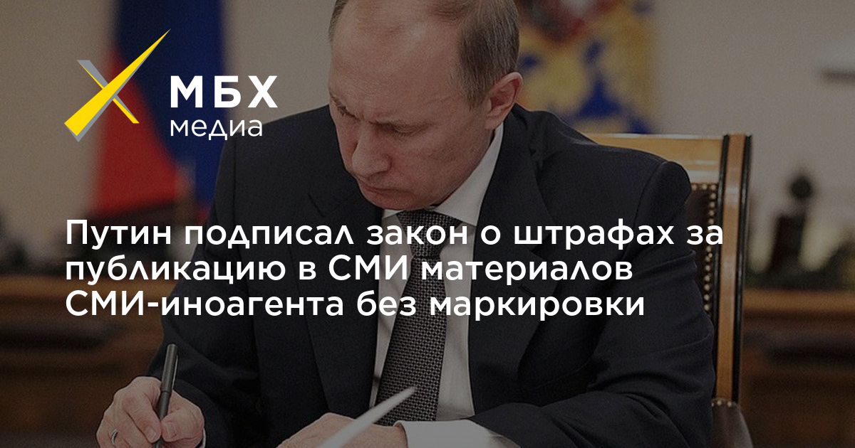 Путин подписал закон о штрафах за публикацию в СМИ материалов СМИ-иноагента без маркировки
