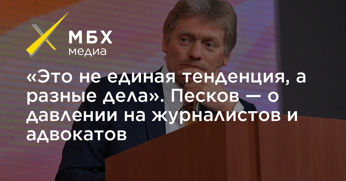 «Это не единая тенденция, а разные дела». Песков — о давлении на журналистов и адвокатов