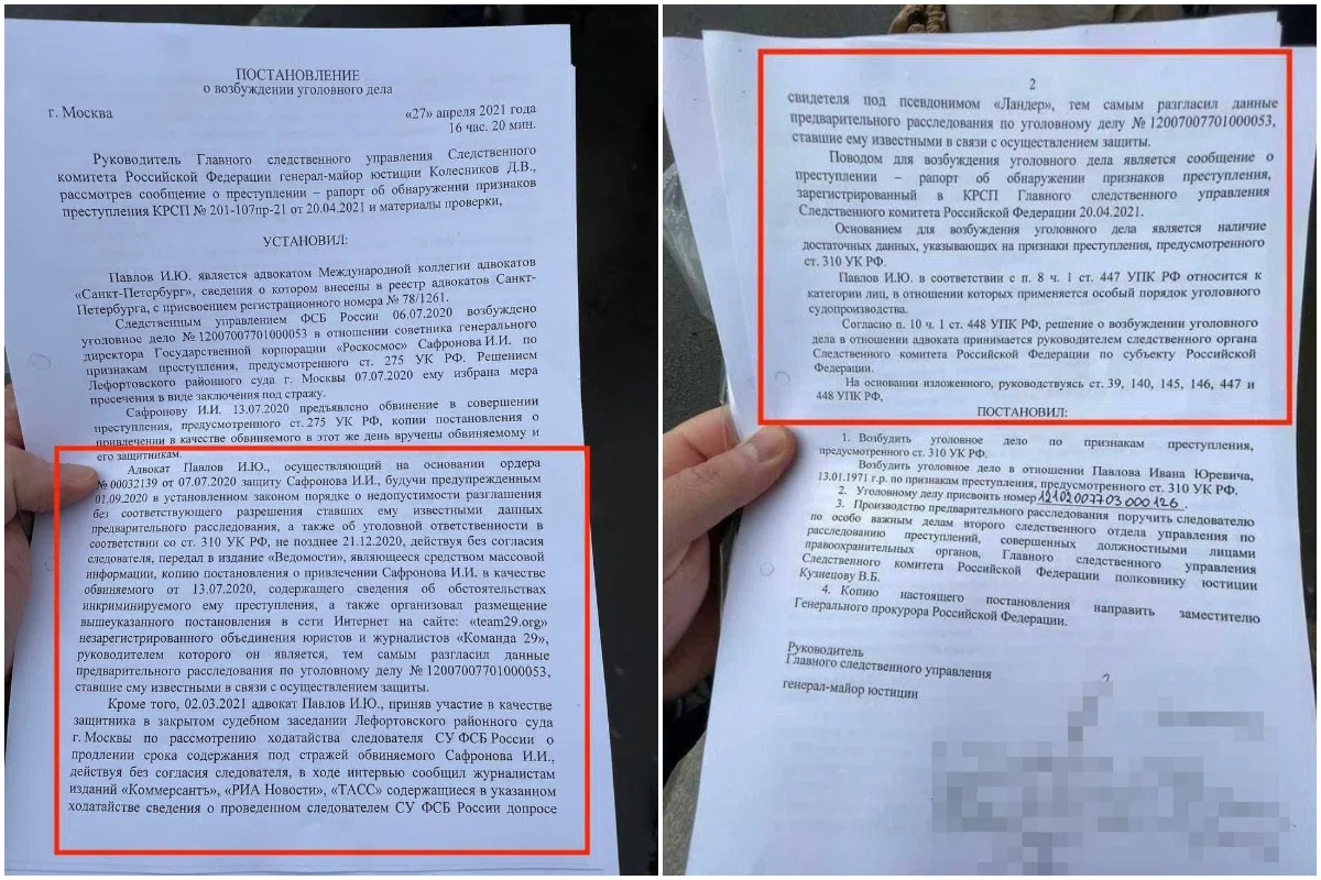 Характер предпраздничного задержания и обысков, проводимых дома у Павлова, у ряда его сотрудников и в офисе «Команды-29», указывает на возможность вменения — возможно не только Павлову — куда более серьезной статьи 283 УК — «Разглашение государственной тайны», по части первой которой адвокату светит до четырех лет лишения свободы. В любом случае приговор будет влечь для Ивана невозможность продолжать адвокатскую деятельность, но не исключено, что именно в этот момент в Следственном комитете, куда его увезли после задержания в московской гостинице, с Иваном ведется какой-то торг между статьями 310 и 283 УК.