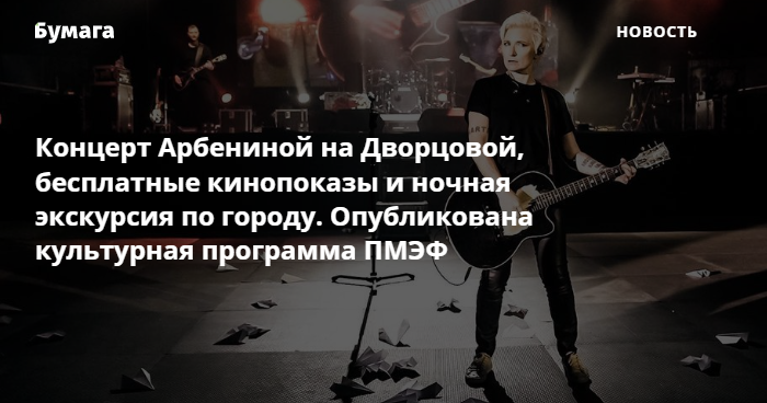Концерт Арбениной на Дворцовой, бесплатные кинопоказы и ночная экскурсия по городу. Опубликована культурная программа ПМЭФ