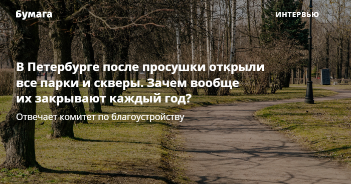 В Петербурге после просушки открыли все парки. «Бумага» узнала у комитета по благоустройству, зачем вообще нужна просушка и что произойдет с дорожками, если сады и скверы не будут закрывать.