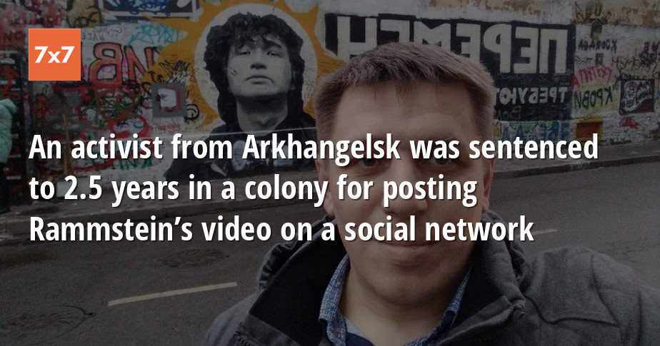 The Lomonosovsky District Court of Arkhangelsk sentenced local activist Andrei Borovikov to 2.5 years in a general regime penal colony. He was accused of distributing pornography because he posted “Pussy” music video by German band Rammstein on vk.com in 2014. He reported this on Instagram.