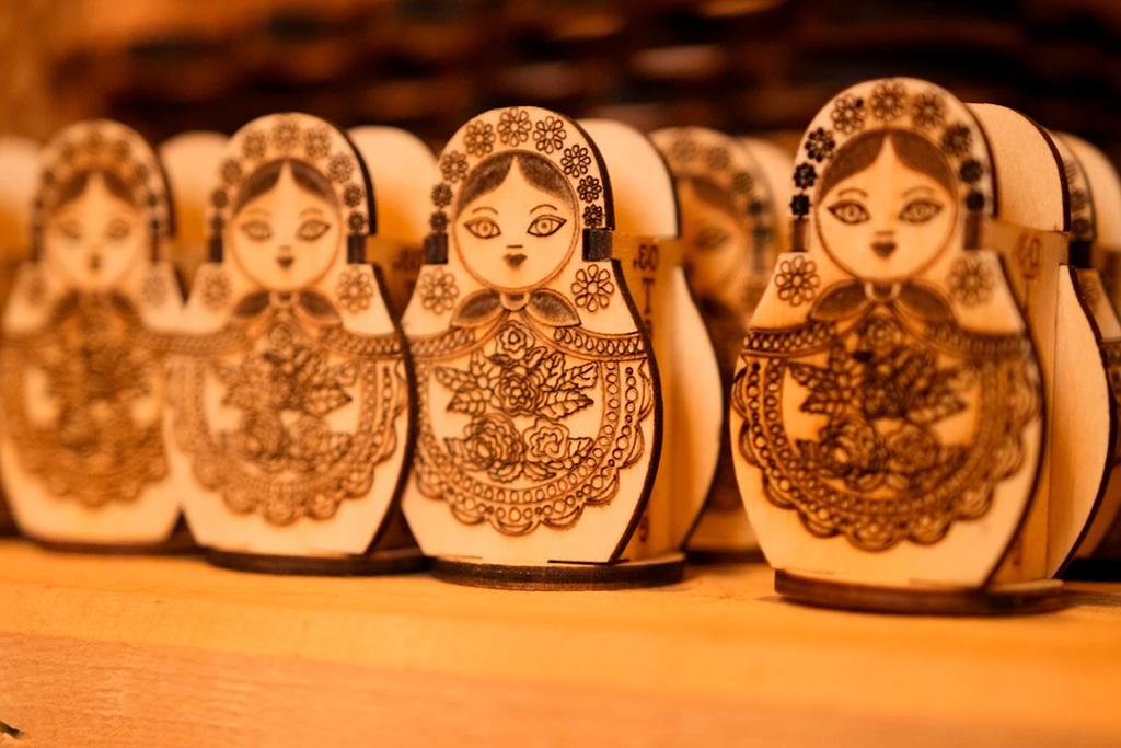 Киршин перебирает резные поделки — на столе выставлены домики, солонки, шкатулки, даже целые замки, сувениры: «Когда мы 17 лет назад организовали магазины, то сувенирная продукция в основном была китайская. Сегодня мы переломили тенденцию, практически все, что продается для туристов — местного производства».