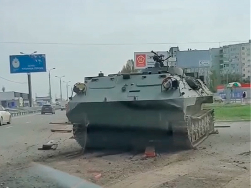 В Волгограде бронемашину уронили с прицепа во время перевозки (ВИДЕО)