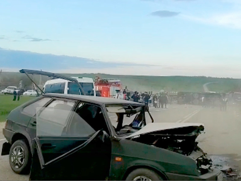 Как сообщил начальник региональной ГИБДД Алексей Сафонов, накануне в 16:40 водитель "Лады" на 535-м километре трассы "Астрахань-Ставрополь" подрезал грузовик DAF, после чего многотонная машина опрокинулась и придавила микроавтобус Mercedes Sprinter, который вез детей на соревнования из Волгограда в Черкесск. Всего в автобусе находилось 14 воспитанниц спортивной школы олимпийского резерва N2 и четверо взрослых. Пятеро детей скончались. По данным источника, детям было от 12 до 14 лет. Ранения получили еще девять человек, они госпитализированы.