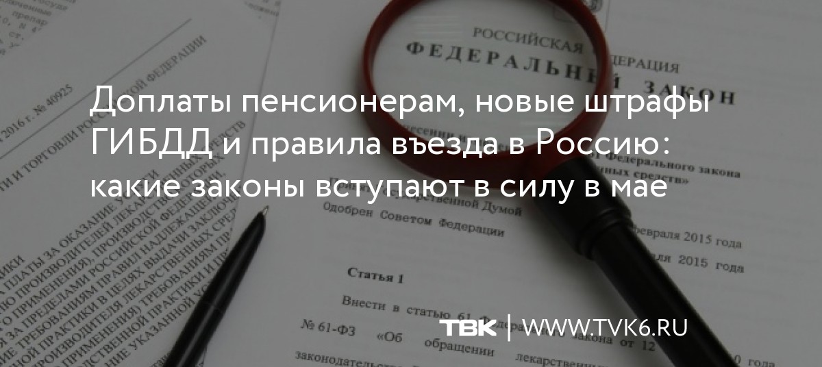 Доплаты пенсионерам, новые штрафы ГИБДД и правила въезда в Россию: какие законы вступают в силу в мае
