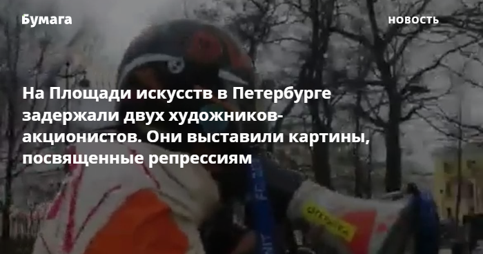 На Площади искусств в Петербурге задержали двух художников-акционистов. Они выставили картины, посвященные репрессиям. Обновлено