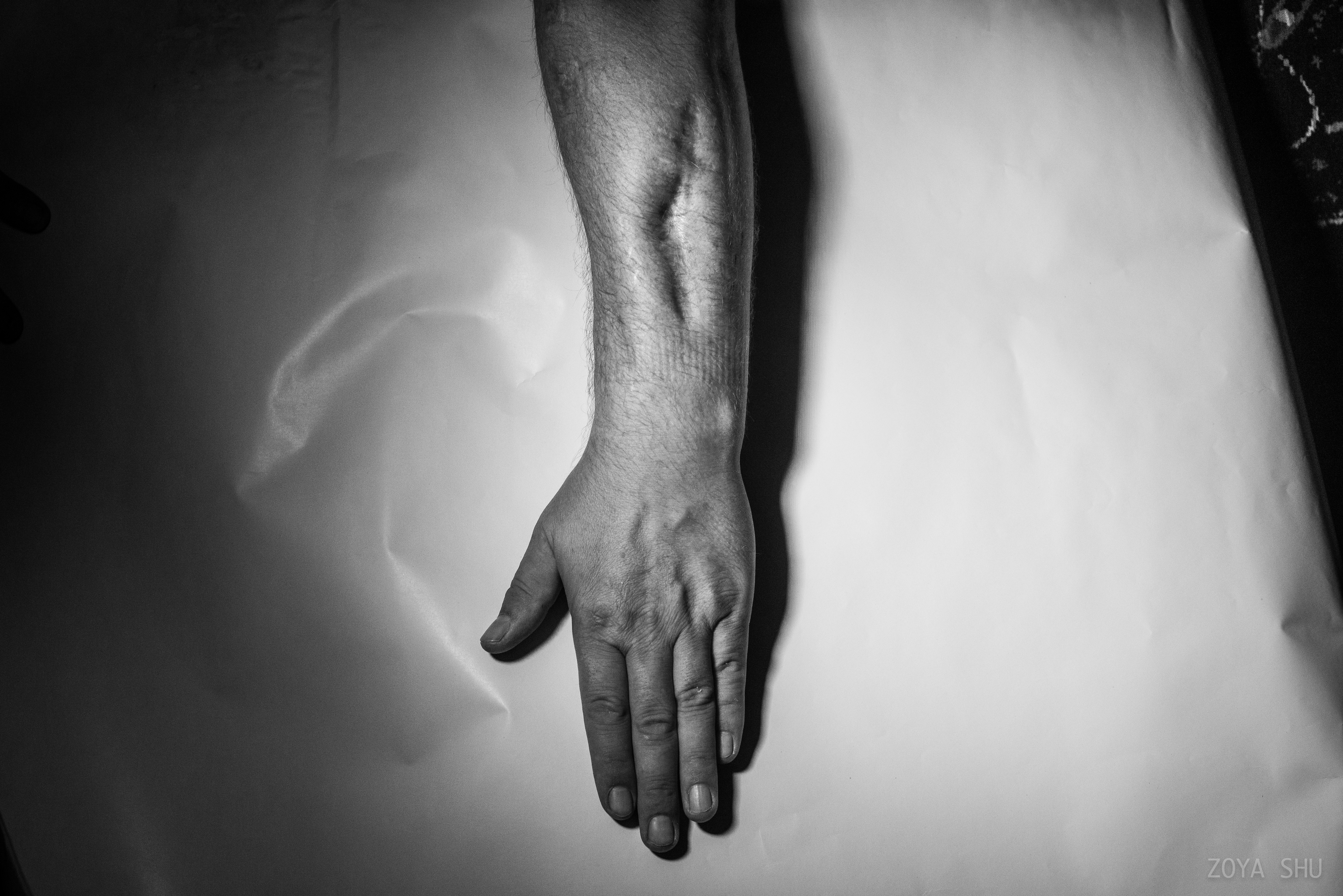 Киевский фотограф Зоя Шу больше года снимала ранения тех, кто получил их во время боев на востоке страны. В отличие от предыдущего своего цикла, тоже посвященного событиям на востоке Украины, в котором при помощи фотографий Шу рассказывала о судьбах освобожденных из плена, на этот раз снятые ею шрамы обезличены. "Потому что эта история – о каждом из нас. Раны на теле Украины – это раны каждого из нас", – говорится в сопровождающем цикл тексте.