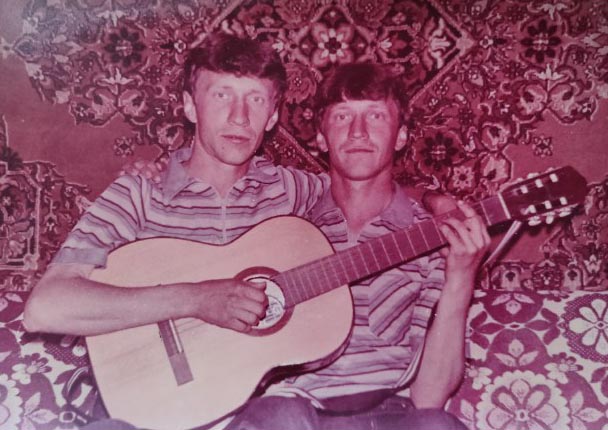 Константин и Владимир с друзьямиФото: Светлана Ломакина «Мы были секачи, как говорят на суржике. Значит, быстро секущие, умные. Нам нравилось все новое, техническое: успевали сделать работу и себе, и ребятам, которые в высшей математике ничего не понимали. Девчата к нам тянулись, не без этого. Мы ж еще и на гитарах играли, рисовали, готовили на все общежитие. Ночью вагоны разгрузим, по червонцу заработаем, а к обеду уже зовем гостей на плов. С преподавателями тоже дружили. Один только нас невзлюбил, старик по гражданской обороне. У нас похожие почерки, как будто один человек писал, и он нам за контрольную двойки поставил. Мы расселись в разные углы и опять написали, вышло снова все одинаковое, — так всегда было».