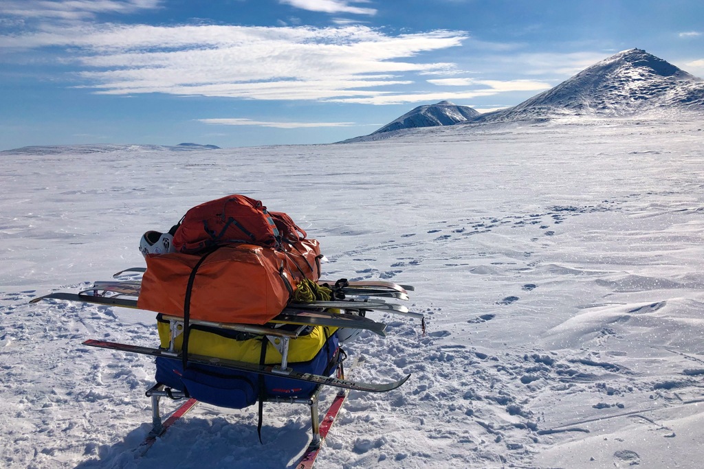 На четвертый день экспедиции случился форс-мажор: ветер пропал на полдня, и тогда же сломались сани, не выдержав вибраций по застругам. Пришлось идти пешком 20 километров до зимника, волоча за собой тяжелые сани со снаряжением.