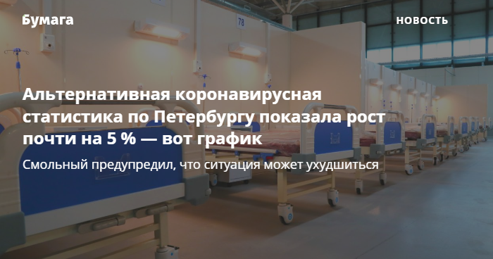 За эту неделю в альтернативной коронавирусной статистике по Петербургу зафиксировали около 5190 больных COVID-19. На прошлой неделе их число составляло 4955, на позапрошлой — 4796, а на позапозапрошлой — 5008. То есть небольшой рост заболеваемости идет уже две недели.