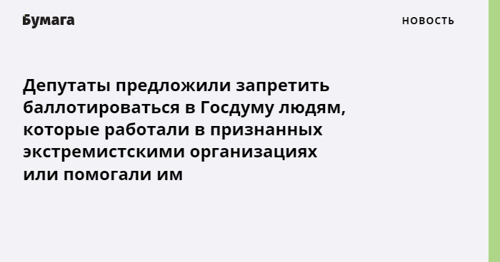 Работников запрещенных организаций намерены не допускать в Госдуму