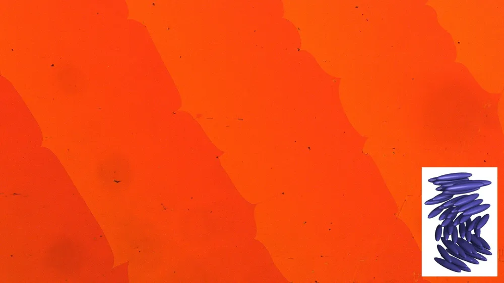 Например, «мраморная» текстура на рис. 1 указывает на то, что вещество образует нематическую фазу. В ней центры молекул разупорядочены, однако имеется ориентационный порядок, то есть молекулы ориентированы в одном направлении.