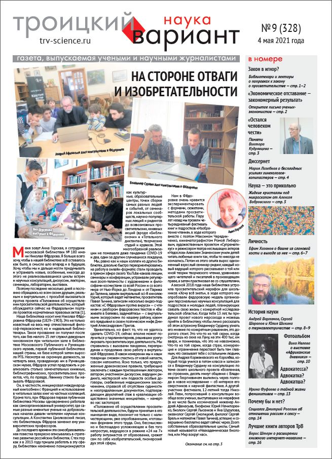 Весь номер газеты «Троицкий вариант — Наука» № 328 от 4 мая 2021 года в PDF