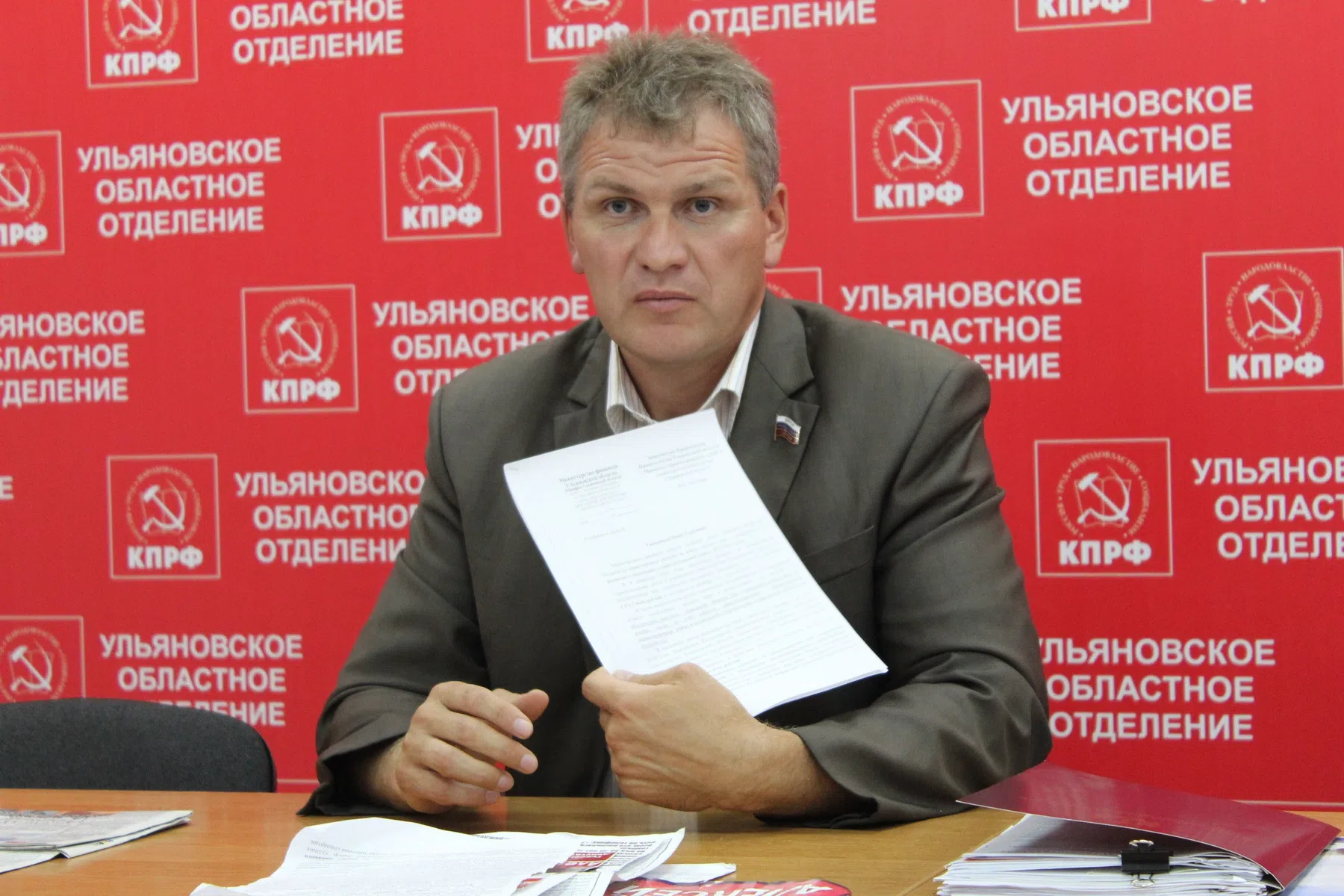 С Куринным и другими коммунистами мы встречаемся в здании Ульяновского обкома КПРФ, которое несколько отдалено от центра и мало чем отличается от соседних домов. В глаза бросается только красная партийная вывеска, которая соседствует с таким же щитом агентства по недвижимости и козырьком кальянной. В холле пачками лежит чуть ли не тираж «Правды», на шкафу стоит бюст Ленина.