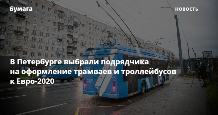 В Петербурге подвели итоги тендера на художественное оформление бортов трамваев и троллейбусов к Евро-2020. Победителем стало ООО «Терминал», которое выполнит работы за 7,7 миллиона рублей. Об этом сообщается на сайте госзакупок.