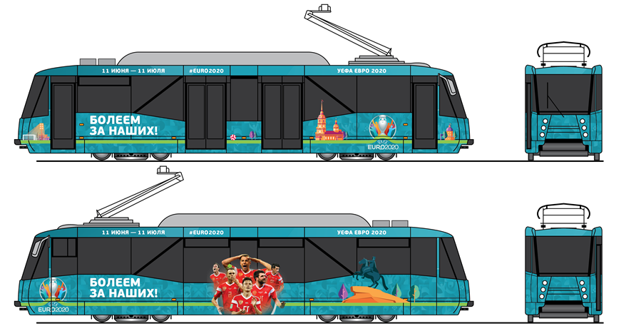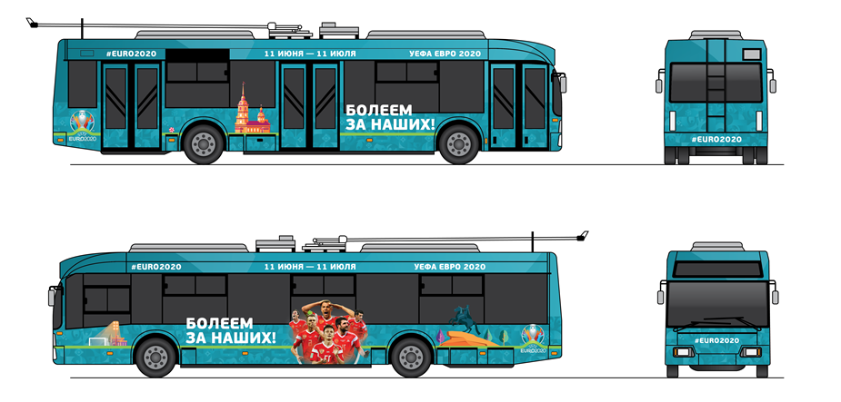 На время Евро-2020 транспорт оформят с помощью специальной пленки с тематическими рисунками, после мероприятия ее должны снять. Заказчик работ — ГУП «Горэлектротранс».