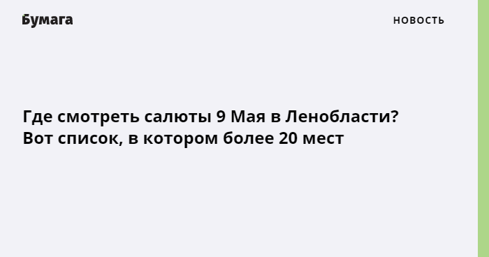 Салюты и фейерверки 9 мая запустят в 26 населенных пунктах Ленинградской области. Список опубликовала администрация региона.