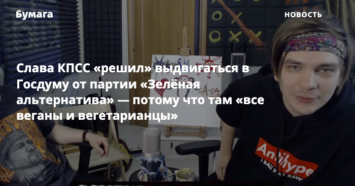 Рэпер Слава КПСС объявил, что он решил выдвигаться от партии «Зеленая альтернатива». Об этом хип-хоп исполнитель заявил в стриме на своем канале на YouTube.