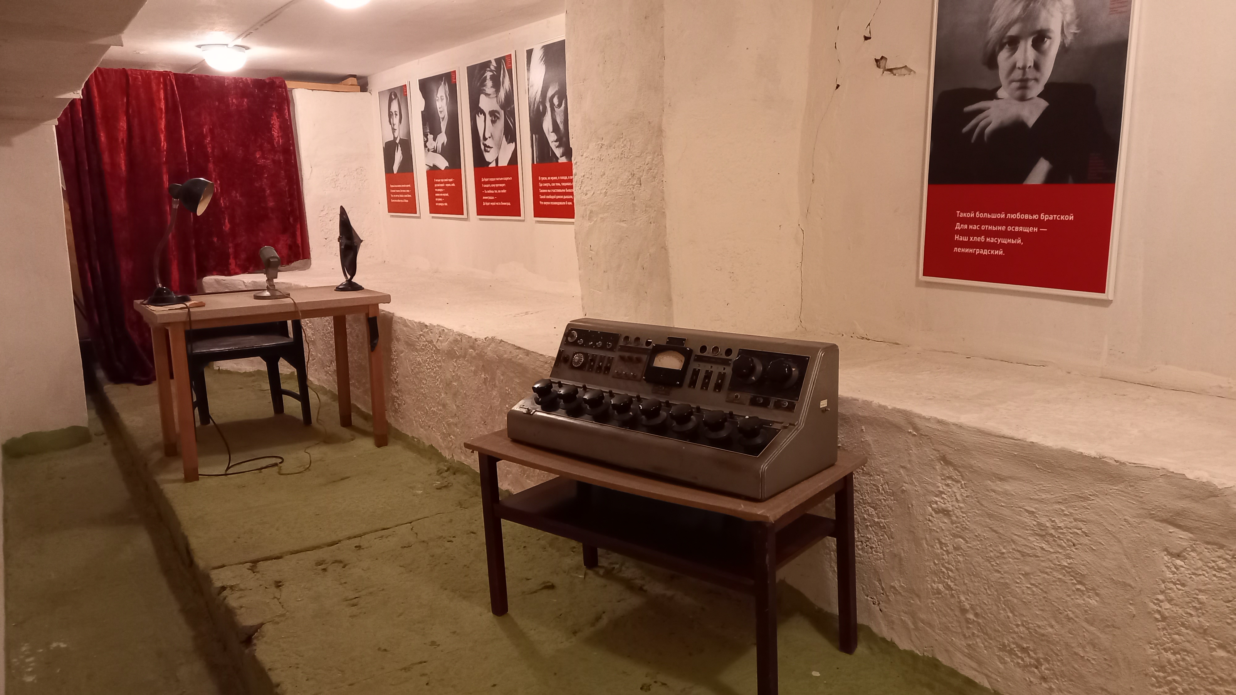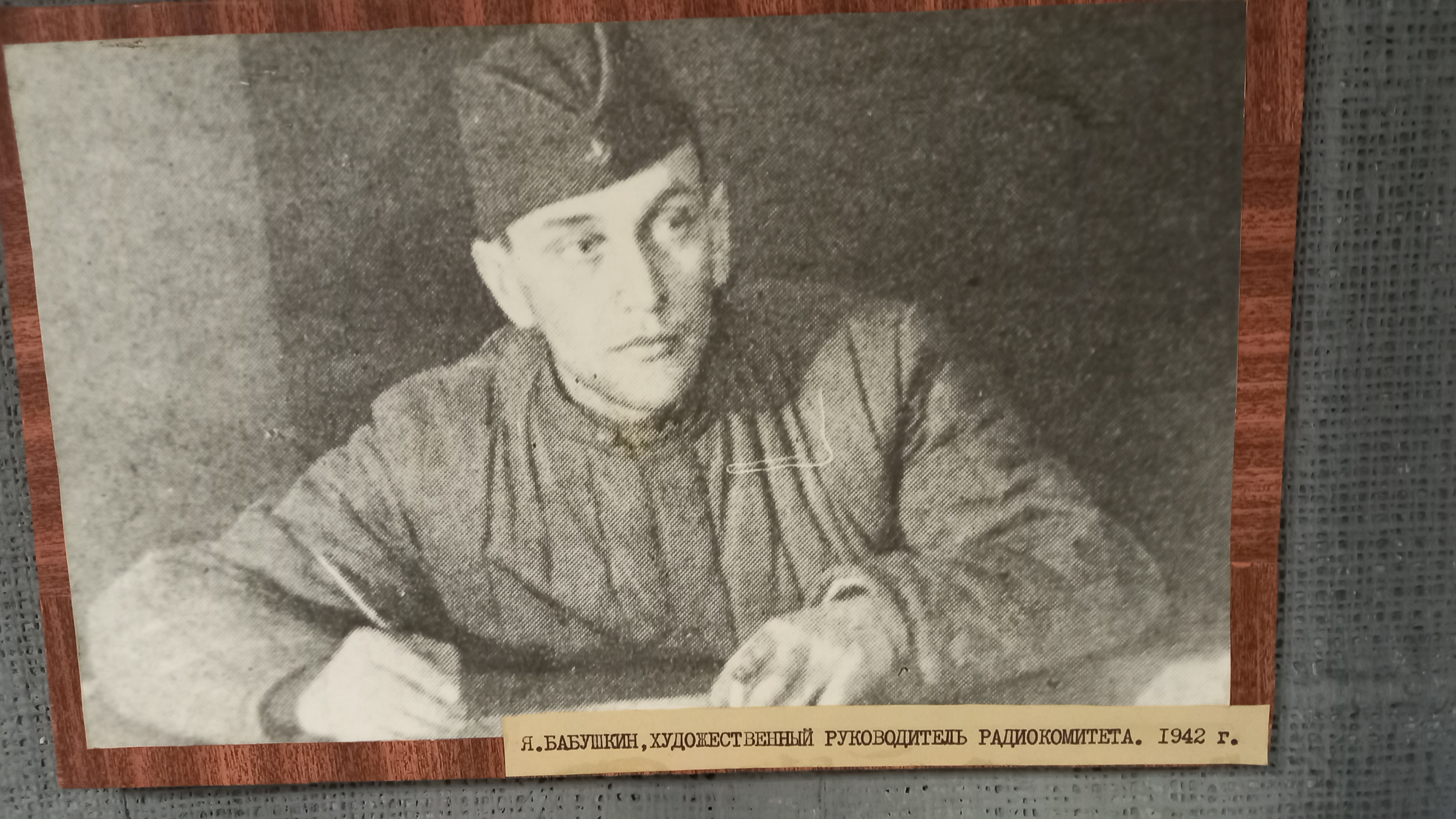 На центральном стенде большого зала рядом с фотографиями и документами Ольги Берггольц – фотографии главного редактора художественного вещания Якова Бабушкина, необыкновенно талантливого, но уволенного за то, что он еврей, в 1943 году он погиб на фронте. Фото писателей Веры Инбер и Всеволода Вишневского, знаменитой артистки, режиссера и диктора Марии Петровой, чьим неподражаемым голосом было прочитано невероятное количество произведений для детей. Дальше – отдельный уголок двух звездных радиожурналистов – Лазаря Маграчева и Матвея Фролова.