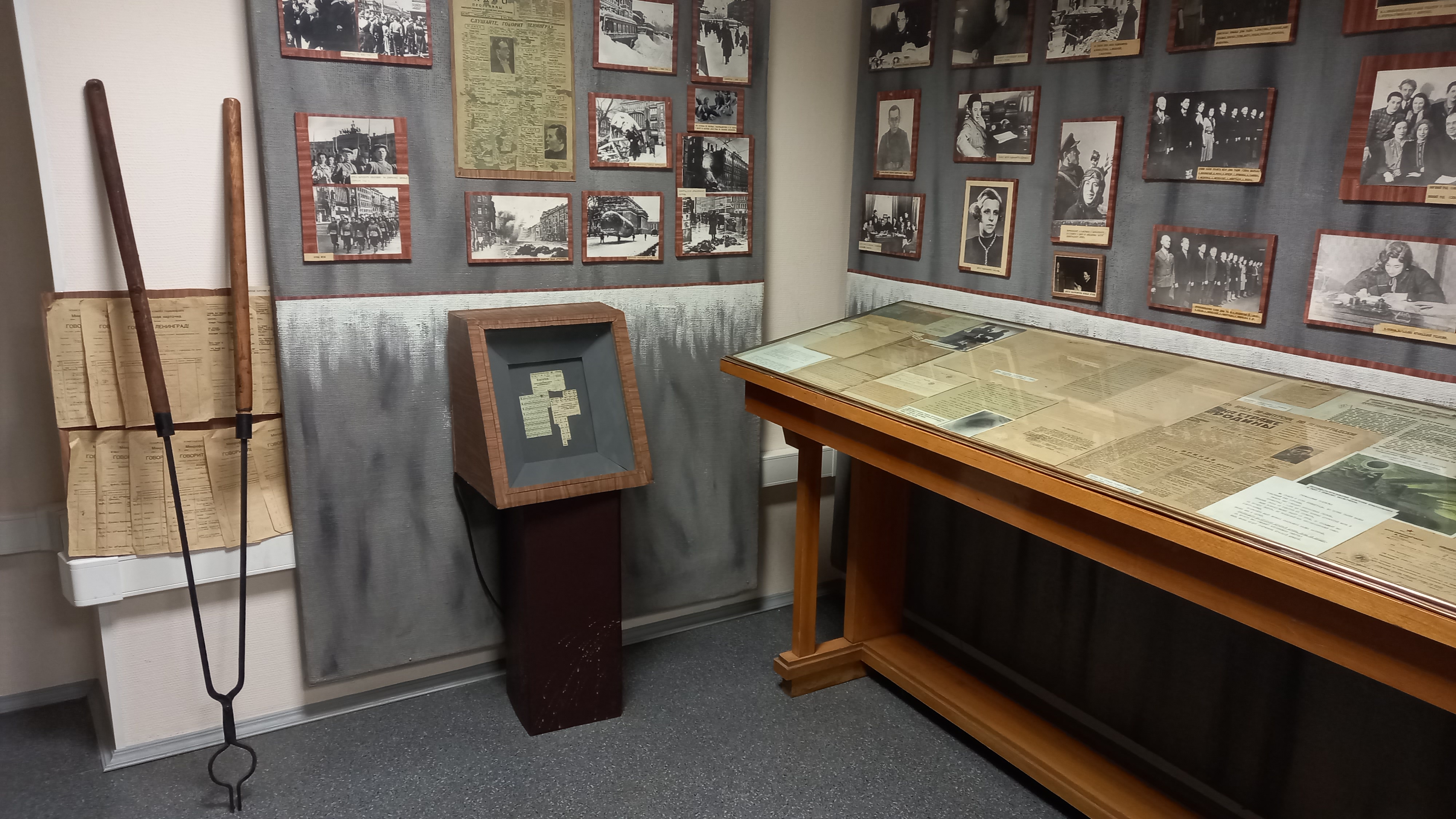 – Эта любительская экспозиция была создана в 1976 году молодыми людьми, комсомольцами, главным инициатором был Олег Руднов, – поясняет Юрий Радкевич. – Здесь у нас традиционные тематические стенды, но главная ценность – это, конечно, артефакты и документы. В том числе кое-какие подлинные документы Ольги Берггольц, которые нам отдала ее сестра Мария Федоровна.