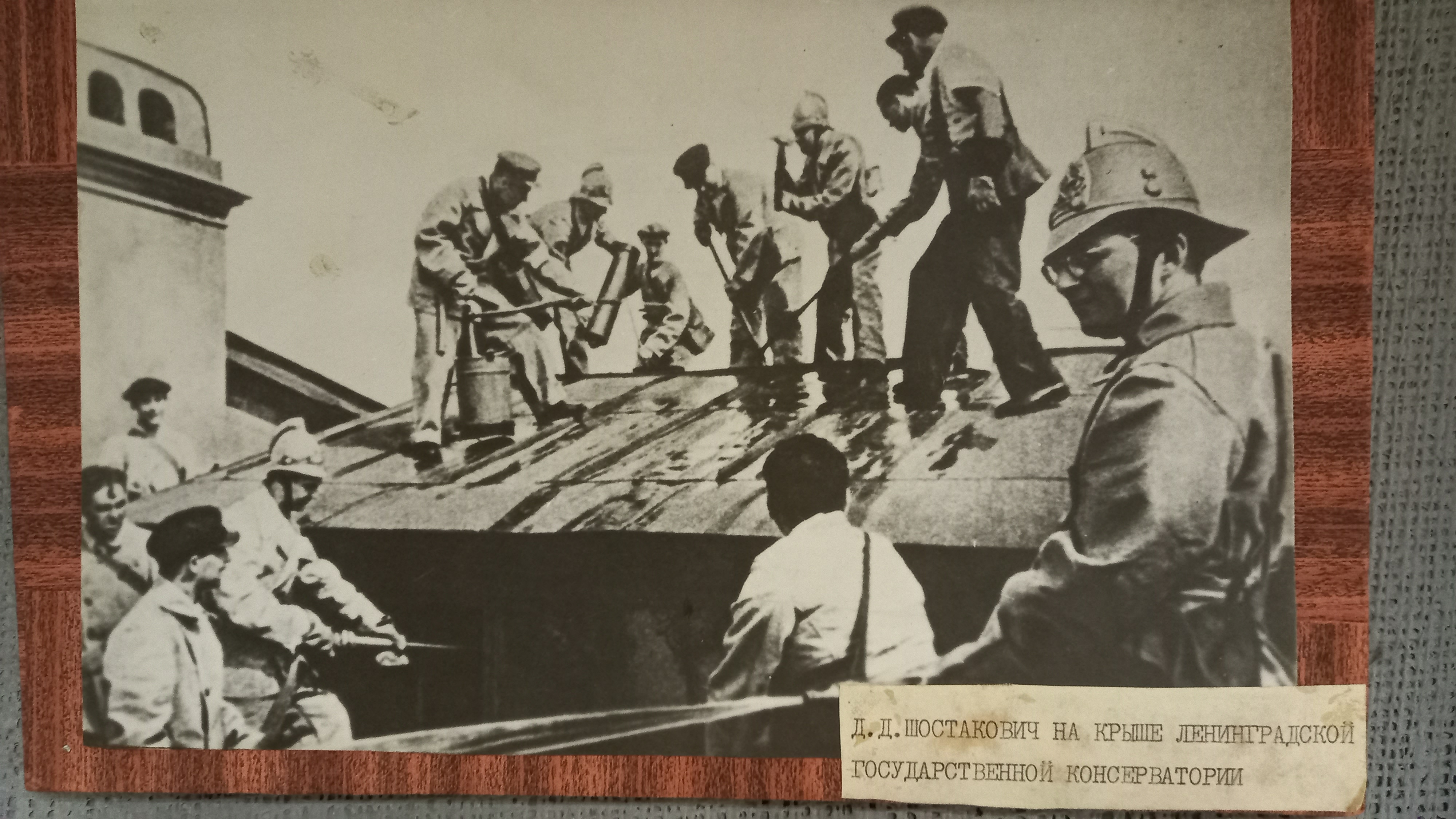 Музыке посвящен отдельный стенд – ноты 7-й симфонии Шостаковича, вот тут играет блокадный оркестр, а тут – Шостакович уже в каске, на крыше консерватории, дежурит, чтобы хватать зажигалки – такими же щипцами.