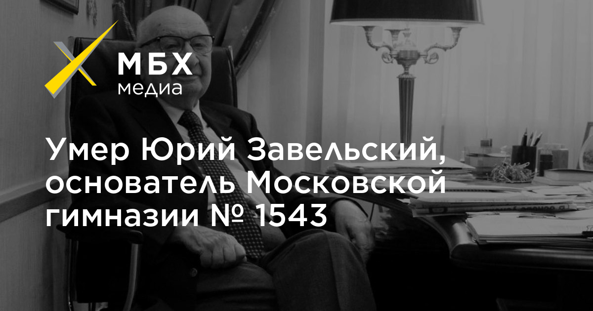 На 94-м году жизни умер Юрий Завельский, педагог, первый директор и основатель московской школы № 43 (сейчас Московская гимназия № 1543). Об этом в фейсбуке написал главред «Эха Москвы» Алексей Венедиктов.
