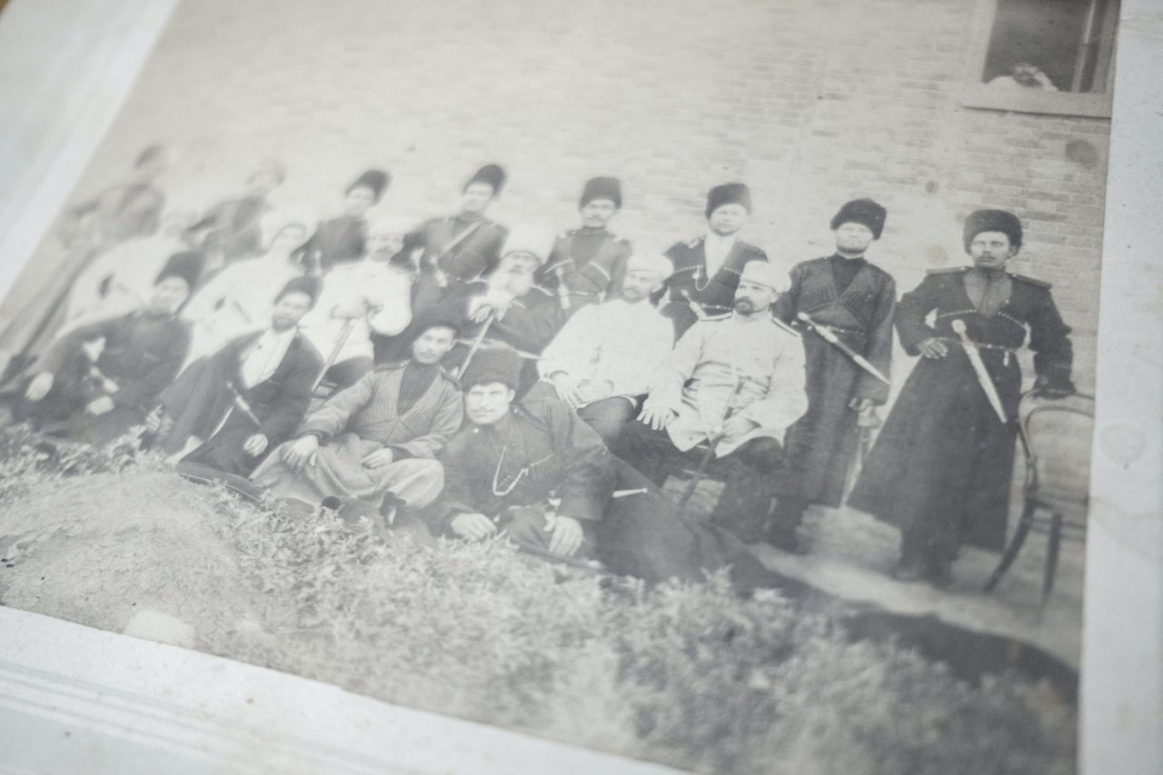 Казаки станицы Безскорбной. Дореволюционное фото, переданное жителями в местный историко-краеведческий музейФото: Николай Хижняк для ТД В музее станицы Бесскорбной внутри того же здания ДК много экспозиций о Великой Отечественной, народном образовании, трудовых колхозных подвигах станицы, об известных летчиках и генералах родом отсюда. Есть даже изображенная местными школьниками из папье-маше «Дорога жизни» — конвой с продовольствием, прорывающийся в блокадный Ленинград.