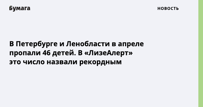 В пресс-службе «Лизы Алерт» рассказали также о рекордном числе сообщений о пропаже несовершеннолетних — это 46 человек. В «ЛизеАлерт» отмечают, что речь чаще всего речь идет о подростках, которые ушли из дома.
