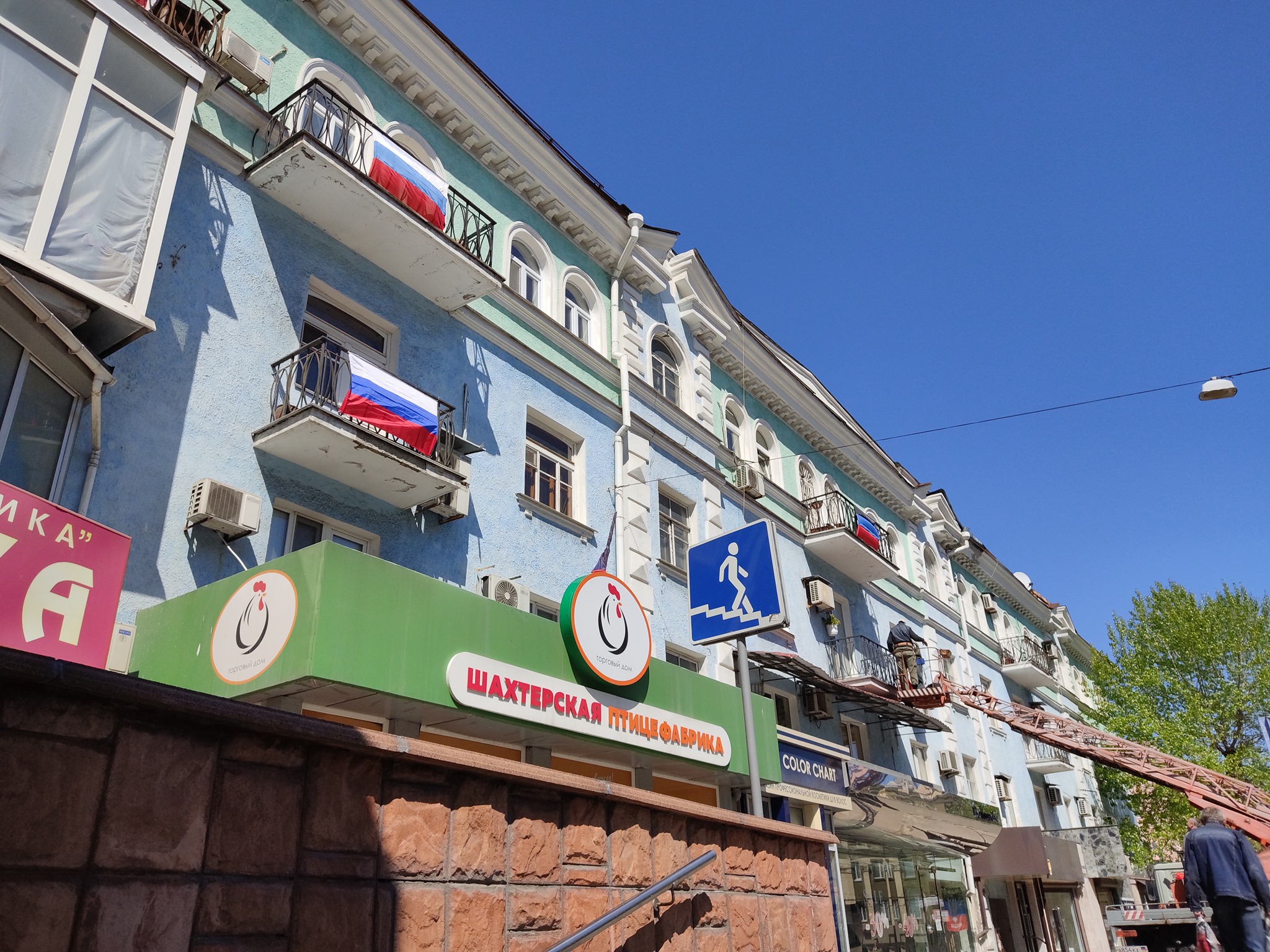 К праздникам в Донецке обновили программную агитацию, над площадью Ленина на недостроенном здании теперь смонтирован огромный плакат с надписью: "Русский Донбасс". Лозунг "Россия для русских" в РФ может привести националистов к уголовному преследованию, в ЛДНР же после проведенных в марте и апреле двух форумов совершенно безнаказанно провозгласили строительство "русских национальных республик" и запускают показательную гуманитарную программу помощи исключительно "русским Украины".