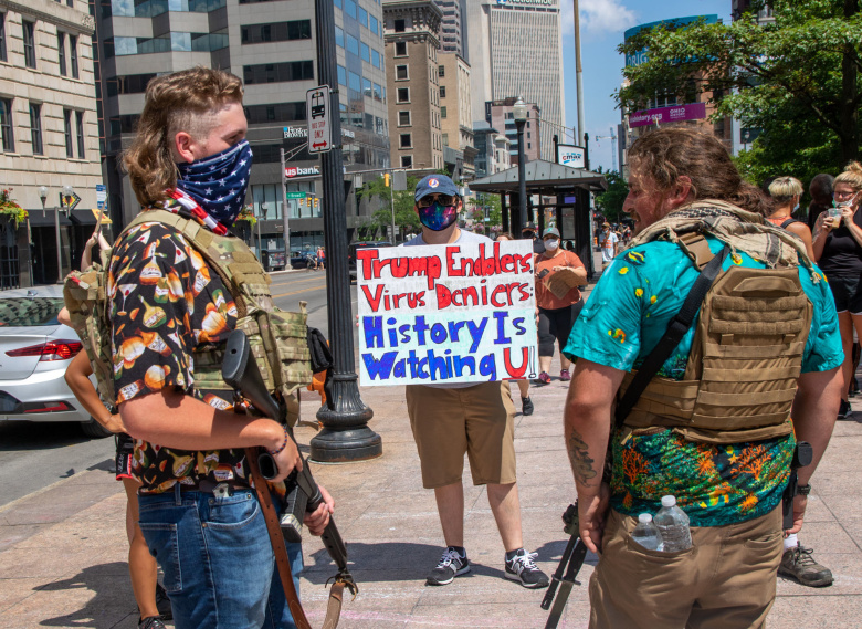 Последователи Boogaloo на протесте в Колумбусе, Огайо (июль 2020). Фото: Becker1999 from Grove City, Wikipedia