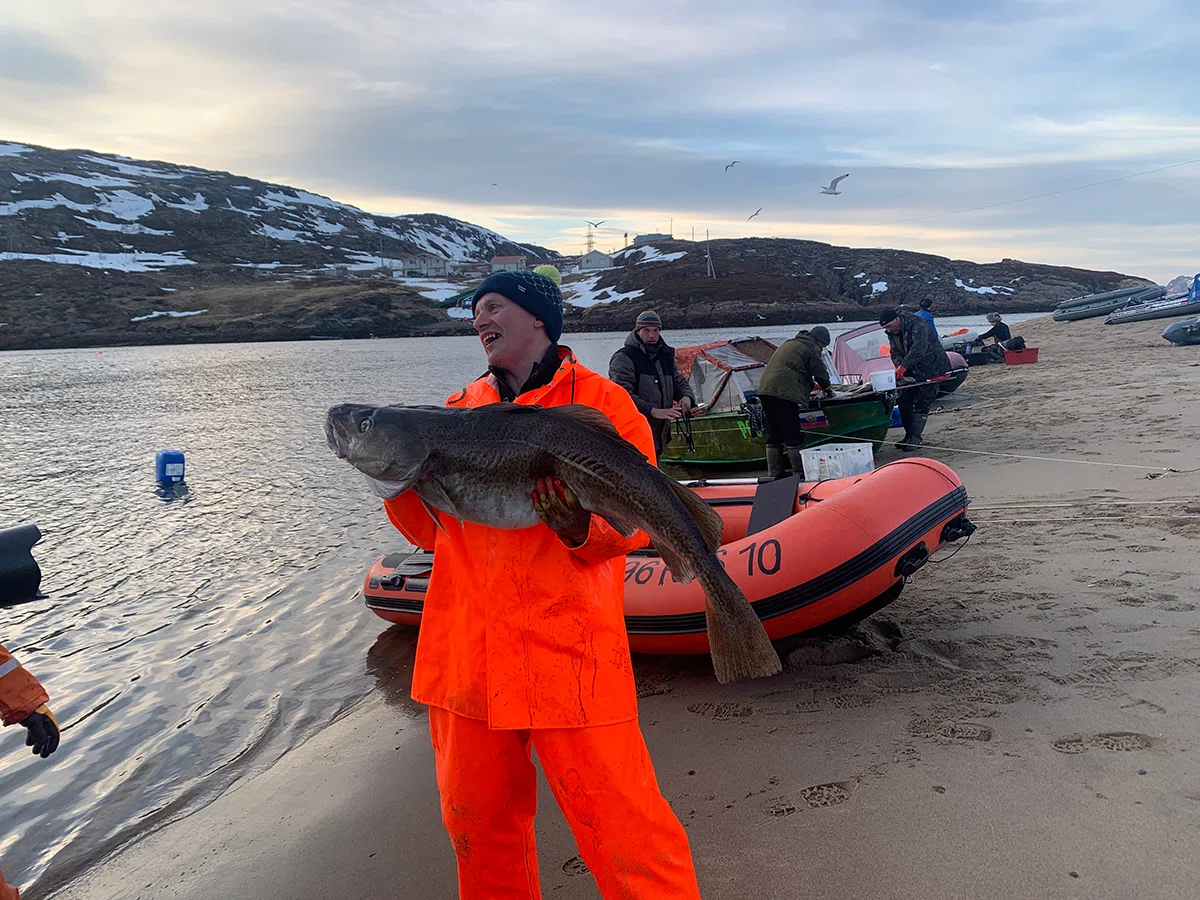 «Приезжаем шестой год, сейчас самый сезон, пока треска идет,» — говорит Андрей из Карелии. Они с другом сегодня звезды: на дне лодки среди прочего улова лежит 12-килограммовая рыбина. Андрей деловито просит у «коллег» безмен, чтобы удостовериться в точности веса, определенного на глаз. Действительно, 12, но это не рекорд сезона: накануне у кого-то было 16 кило.