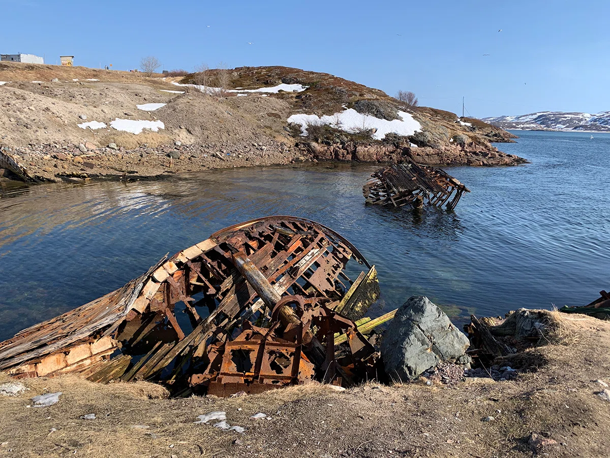 С трудом преодолев злосчастную грунтовку, попадаешь почти в Норвегию: фьорд, морская синь, скалы. Но это если смотреть вдаль, потому что вблизи поджидают более прозаичные картины: несколько обшитых сайдингом пятиэтажек, ржавые гаражи и развалившиеся дома. Последние я еще помню обитаемыми, когда вдоль сельской улицы на заборах сплошь сушились рыбацкие сети. Тогда я впервые приехала в село на выпускные экзамены местных студентов. В стенах (работавшей еще!) школы мурманский колледж открыл свой филиал, готовил матросов и рыбообработчиков. Дети сдавали на «отлично»: то, чему их учили, они почти каждый день применяли на практике. И все говорили: теперь смогут остаться на малой родине, не уезжать в город, ведь работа есть.