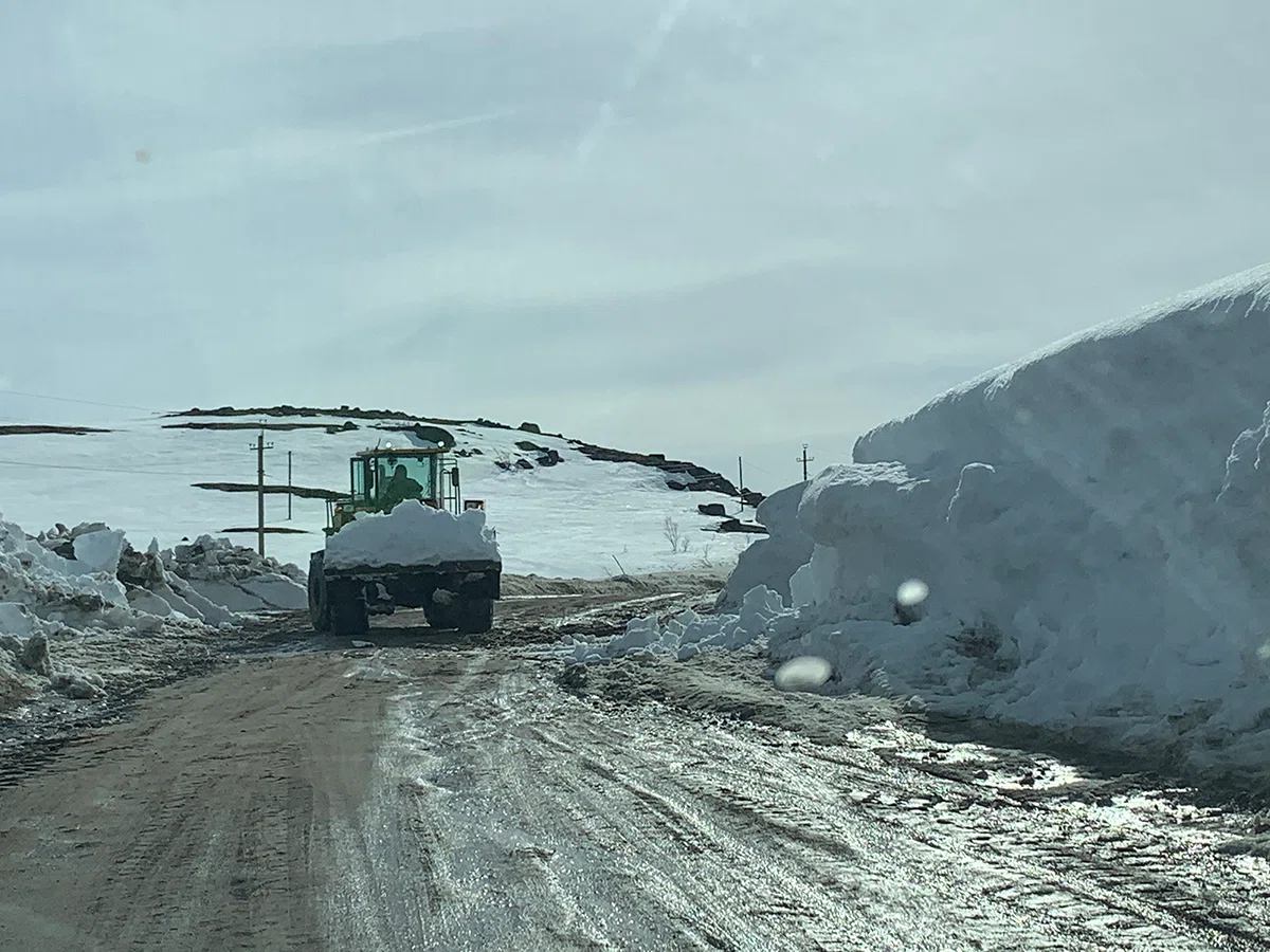 Вообще, если б дорогу чистили регулярно, такое бы вряд ли происходило, но то заправить технику нечем, то она ломается, то «не хватает мощностей». Впрочем, снегу тут и правда невообразимо много, в последние дни апреля местами дорога все еще напоминала белый коридор, где высота стен несколько метров.