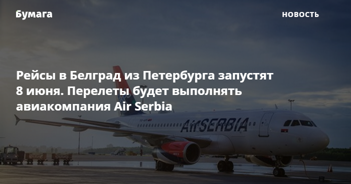 Рейсы в Белград из Петербурга запустят 8 июня