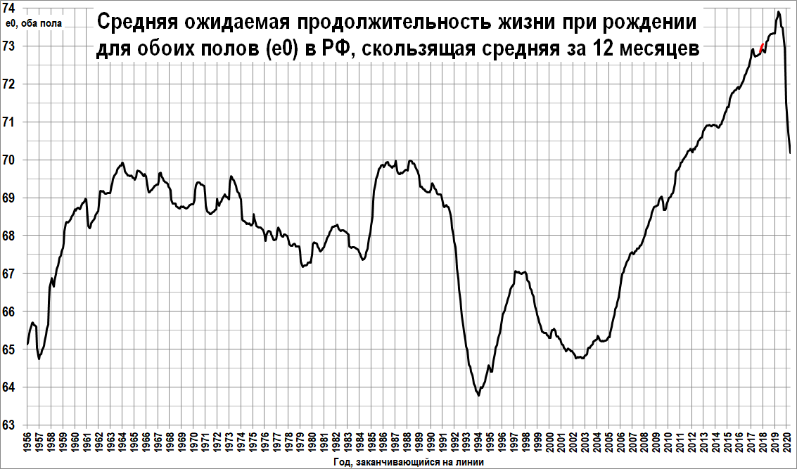 – За 2006–2019 гг. рост, по официальным данным, составил 8,5 лет: с 64,8 до 73,3 года, а в реальности с учётом завышения численности стариков, может, 8,3 года или 8,2, или даже 8,1 года. Это совершенно не умаляет успехи России в плане снижения смертности за последние 15 лет, но это был догоняющий рост с самого дна (2002–2005).