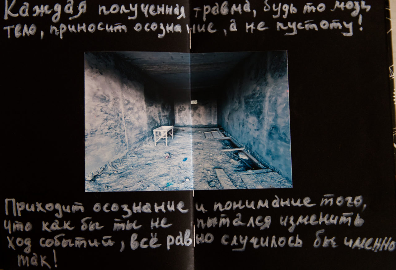 Страница из книги, которая является частью проекта Ольги Петуховой о насилии в семьеФото: Ольга Петухова На самом деле я до сих пор не могу ответить на этот вопрос. Все мое детство, юность, да и нынешняя жизнь — все связано с этими переживаниями. Мне тридцать пять лет, и все, все эти годы я наблюдаю его запои.