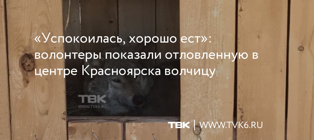 «Успокоилась, хорошо ест»: отловленную в центре Красноярска волчицу показали в питомнике
