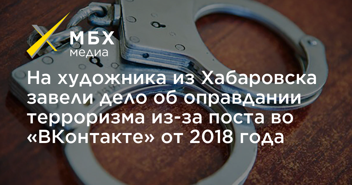 На художника из Хабаровска завели дело об оправдании терроризма из-за поста во «ВКонтакте» от 2018 года