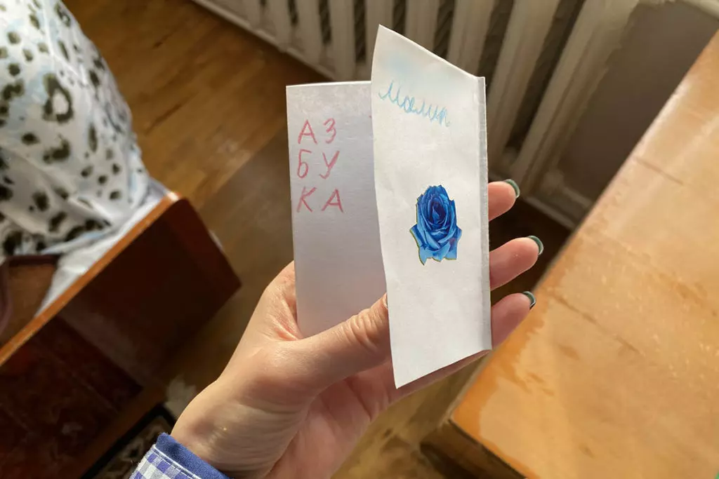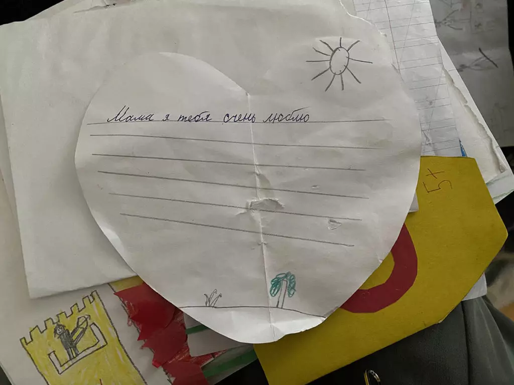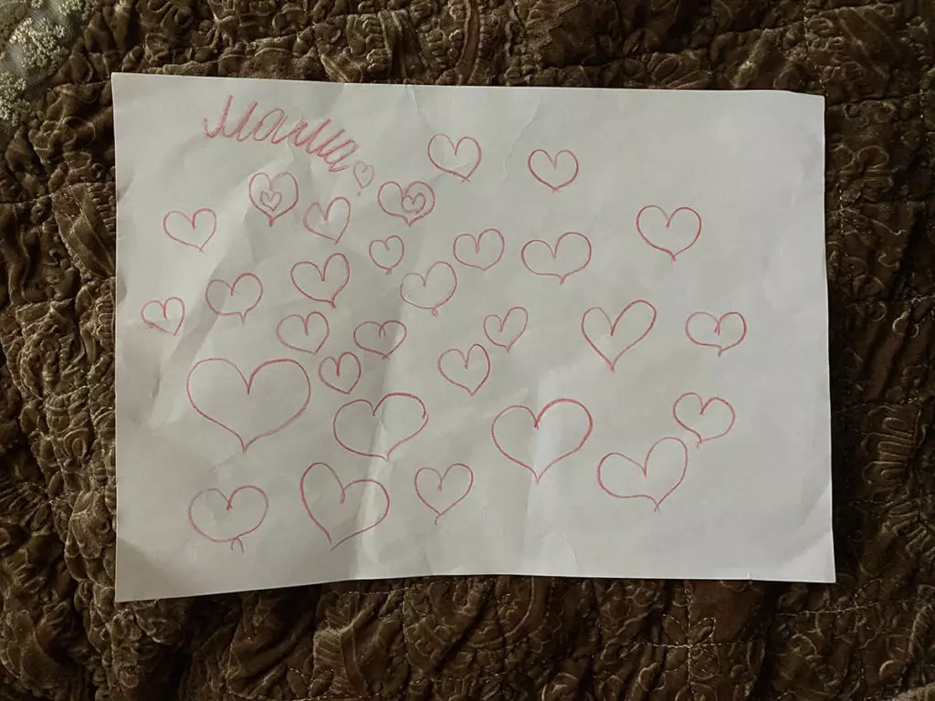 Дети плохо умеют писать и стесняются выводить на доске даже свои имена. Но показывают несколько рисунков — там сердечки, цветок и надпись «Любимая мама».