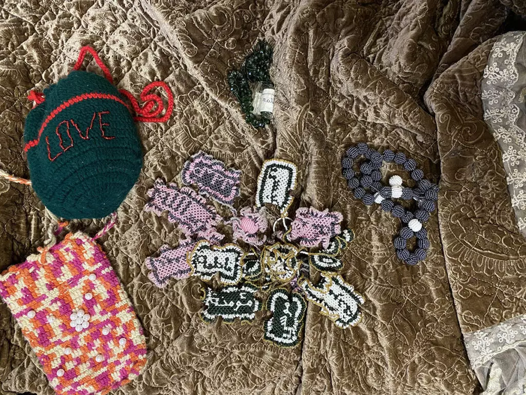 Иса показывает фотографии дочери Иман — на них она уже в плотном черном хиджабе. Сейчас Иман в сирийской государственной тюрьме, у нее еще не было суда и нет никакого приговора. Пока Иман ждет, она может даже заниматься в тюрьме плетением из бисера — Иса показывает поделки, сделанные дочерью, которые передали ему, когда привезли внуков. На лепесточках из бисера вышиты имена всех детей и других родственников.