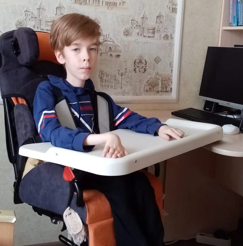 Глебу Сидорченко десять. Он из города Клинцы, Брянская область. Мальчик может держать в руке ручку. Ест и дышит самостоятельно. Но не ходит. И сидит только с поддержкой.