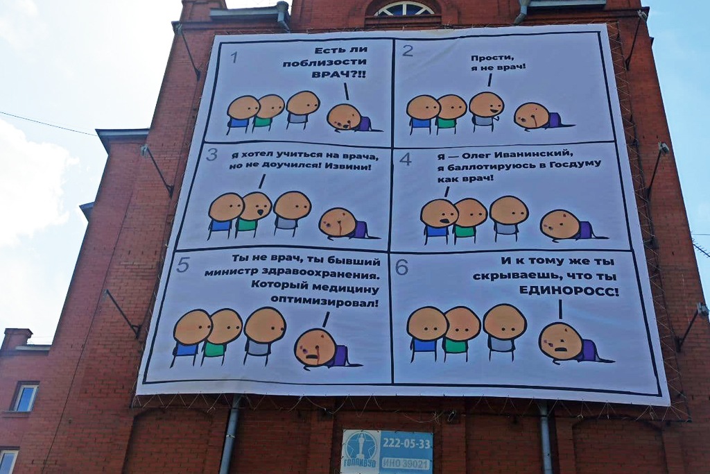 «Ты не врач»: наружная реклама в стиле мемов против новосибирского единоросса. Фото