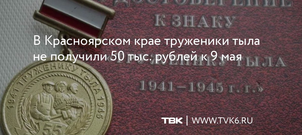В редакцию «ТВК Красноярск» обратилась красноярка Ксения. Ее бабушка 1931 года рождения, Антонина Григорьевна Трубинская, не получила 50 тыс., на которые надеялась. Пожилая женщина во время войны трудилась в тылу. Сейчас труженики тыла приравнены к ветеранам, поэтому у Антонины Григорьевны есть соответствующее удостоверение.«Сегодня в еженедельном радиообращении губернатор Красноярского края объявил о своем решении выплатить ветеранам и участникам Великой Отечественной войны по 50 тыс. руб. Эти деньги они получат ко Дню Победы», – сообщалось на сайте краевого правительства.