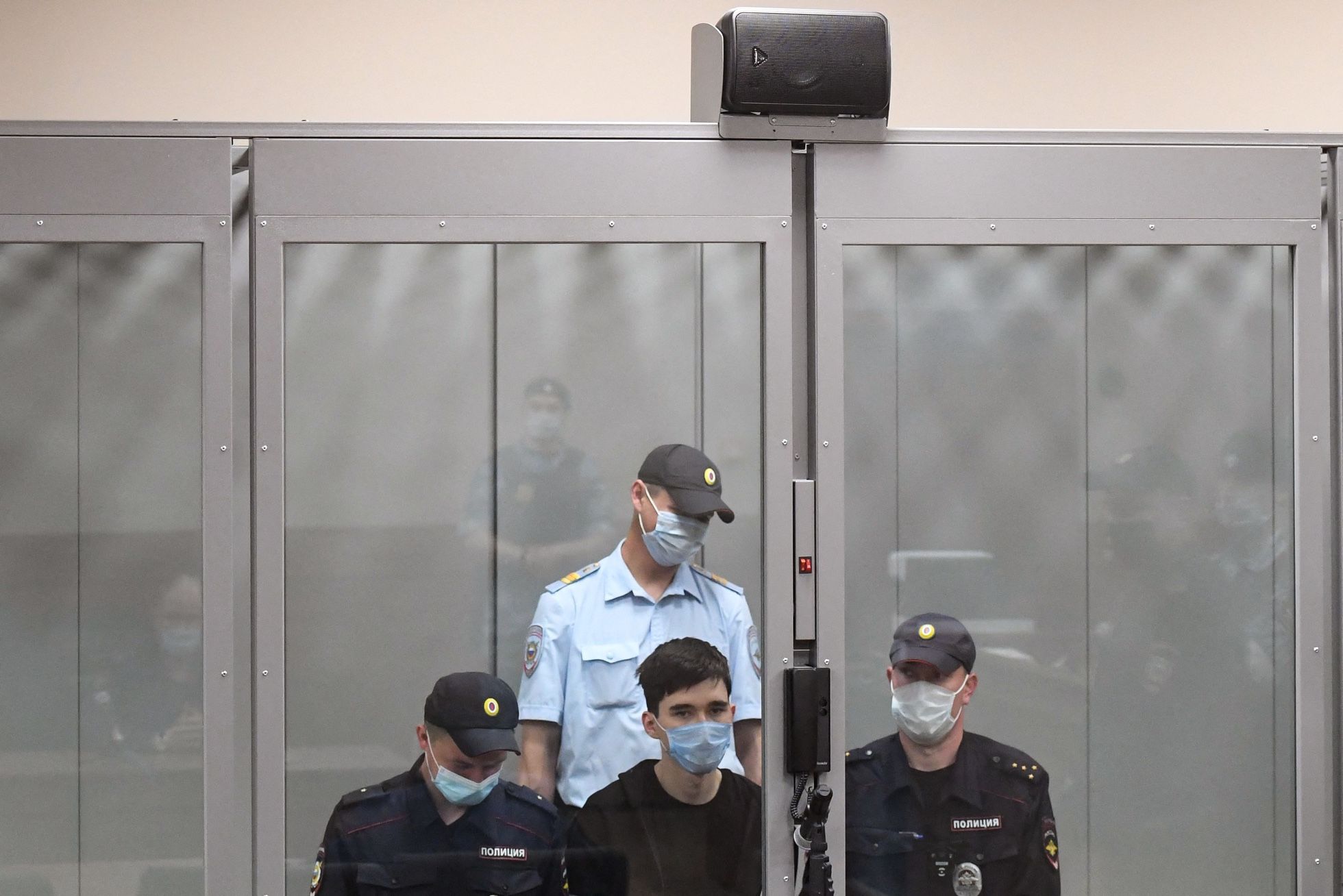 Ильназ Галявиев, арестованный за массовое убийство в Казани, в зале суда. Фотография
