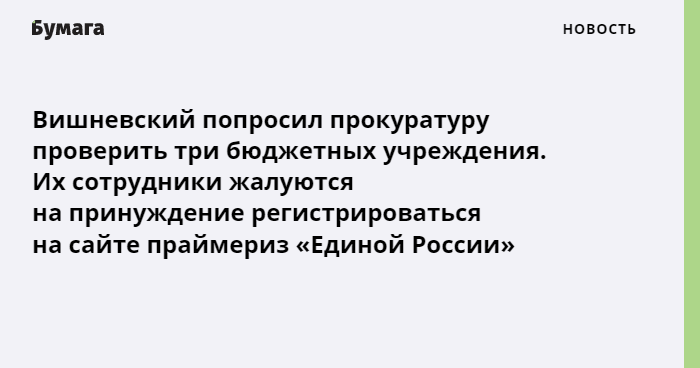 Депутат Закса Борис Вишневский направил в прокуратуру обращение с просьбой проверить три бюджетных учреждения, из которых поступили жалобы на принуждение сотрудников к регистрации на сайте праймериз «Единой России».