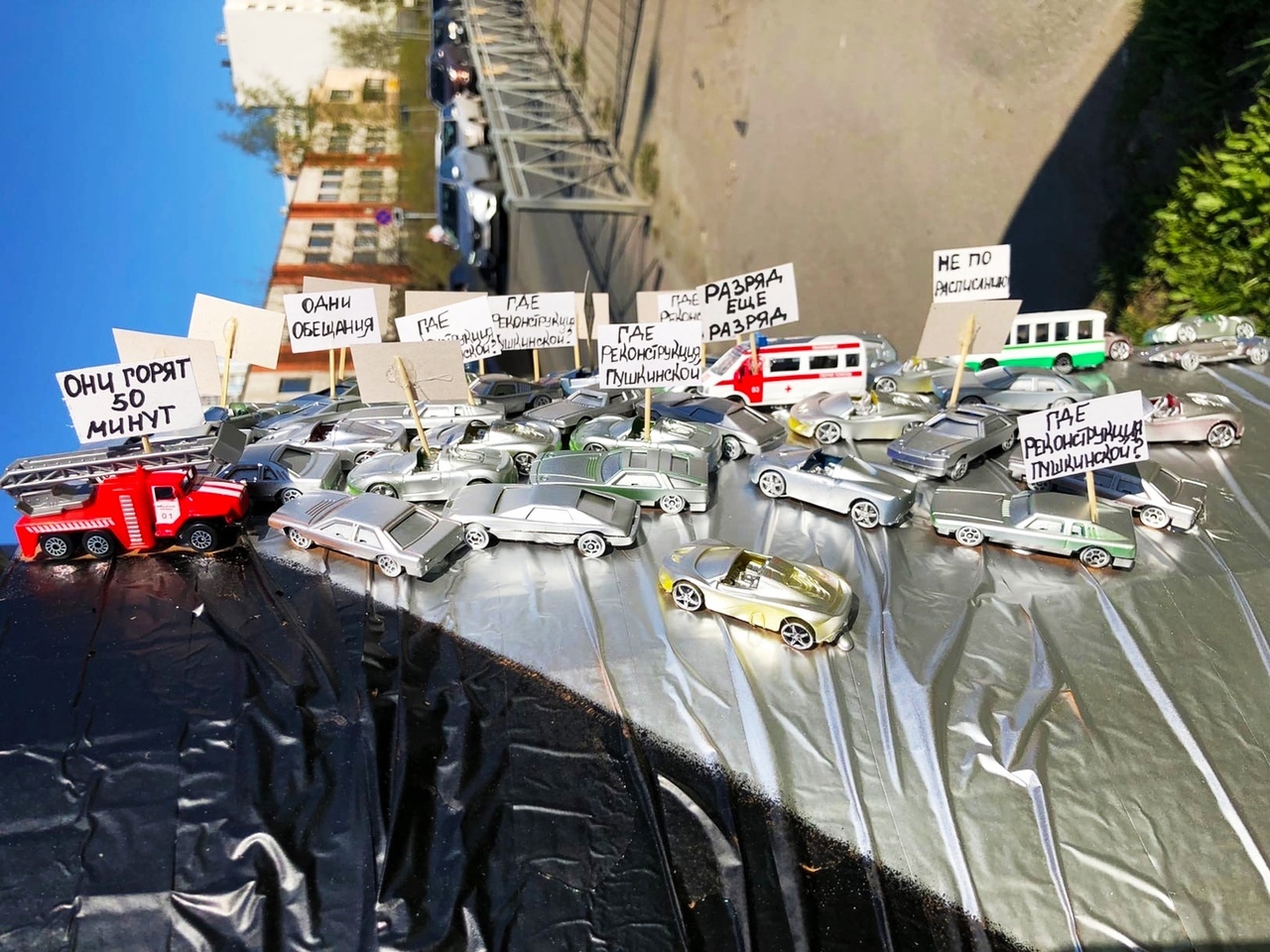 Памятник пробке появился в Центральной Усадьбе. Как уточняются в посте, в этом году отмечается шестилетний юбилей обещаний чиновников улучшить транспортную доступность поселка, где проживает около 50 тысяч человек.