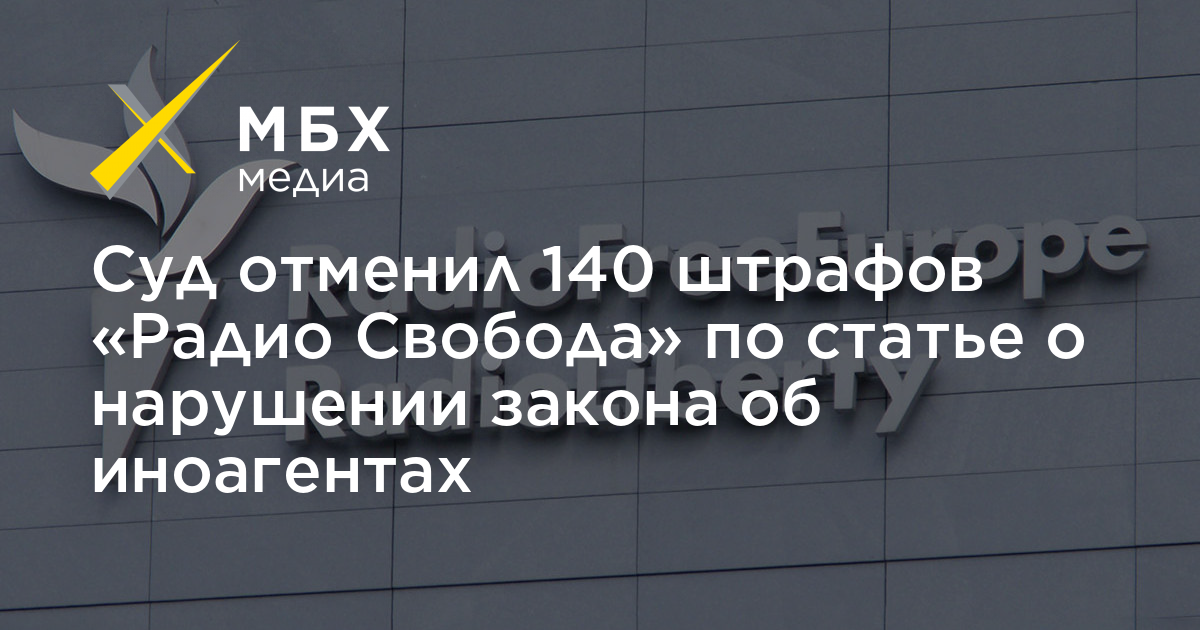 Тверской районный суд отменил решения о штрафе по 140 постановлениям мирового суда в отношении ООО «Радио Свободная Европа/Радио Свобода» и ее гендиректора Андрея Шарого, вынесенным по статье о нарушении закона об иноагентах. Информацию «МБХ медиа» обнаружило в картотеке суда.